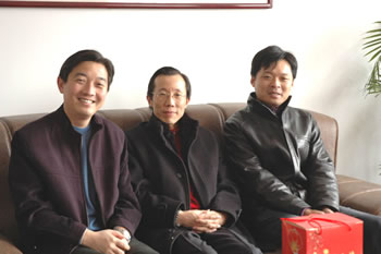 董事長(zhǎng)楊揚(yáng)與副董事長(zhǎng)兼縱橫國際董事長(zhǎng)陳照東、縱橫國際總經(jīng)理凌衛(wèi)國在慰問時(shí)合影