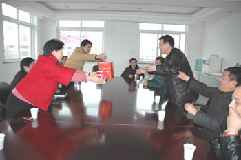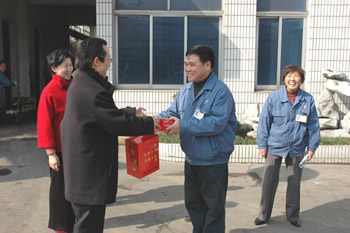 2007年春節(jié)剛過,公司領(lǐng)導(dǎo)班子深入各投資企業(yè)開展慰問活動(dòng)。正要出發(fā),市經(jīng)貿(mào)委主任蔡惠中一行上門慰問
