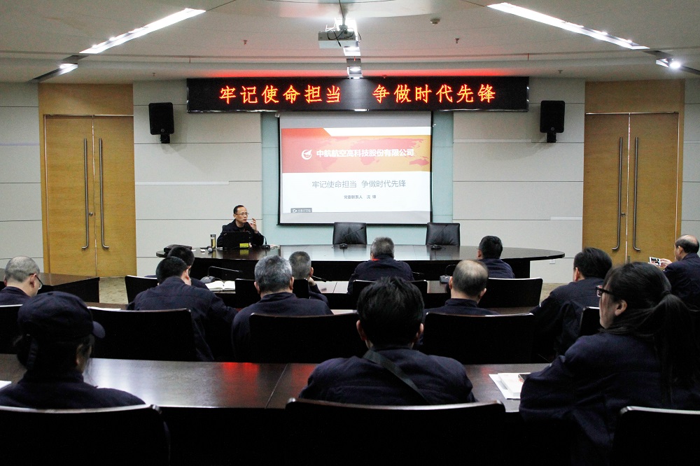 3月28日,中航航空高科技股份有限公司黨委委員沈鋒,作為直屬二黨支部和航智裝備工廠二黨支部的聯(lián)系人,為兩個黨支部全體黨員上了一堂題為《牢記使命擔(dān)當(dāng) 爭做時代先鋒》專題黨課。