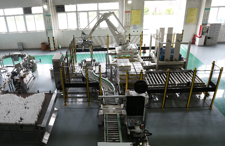 隨著碼垛機器人將首托最后一箱成品放置到位,標志著南沈科技首條殺蟲劑乳油智能包裝線成功投產(chǎn)。 常規(guī)的智能包裝線的建設(shè)周期一般為4個月,要在3個月內(nèi)完成非標智能線的設(shè)計、制造、安裝及廠房的改造任務(wù)具有一定的挑戰(zhàn)。公司副總經(jīng)理、南沈科技總經(jīng)理王利在項目組的啟動會議中要求:該包裝線要堅持高標準、高起點,在設(shè)備選型上要做好調(diào)研、論證;產(chǎn)線布局上要結(jié)合現(xiàn)場的管理定置要求,從包材流、生產(chǎn)線布置、物流通道、人員進出通道等統(tǒng)籌考慮,科學布局;工程進度上要結(jié)合現(xiàn)有生產(chǎn)任務(wù)交期及設(shè)備安裝時間倒排各項任務(wù)的時間節(jié)點,項目經(jīng)理跟蹤,出現(xiàn)偏差及時調(diào)整。不能因為難度大、時間緊就降低建設(shè)要求,不能建成半拉子工程,產(chǎn)線建成后要經(jīng)得起生產(chǎn)的檢驗。