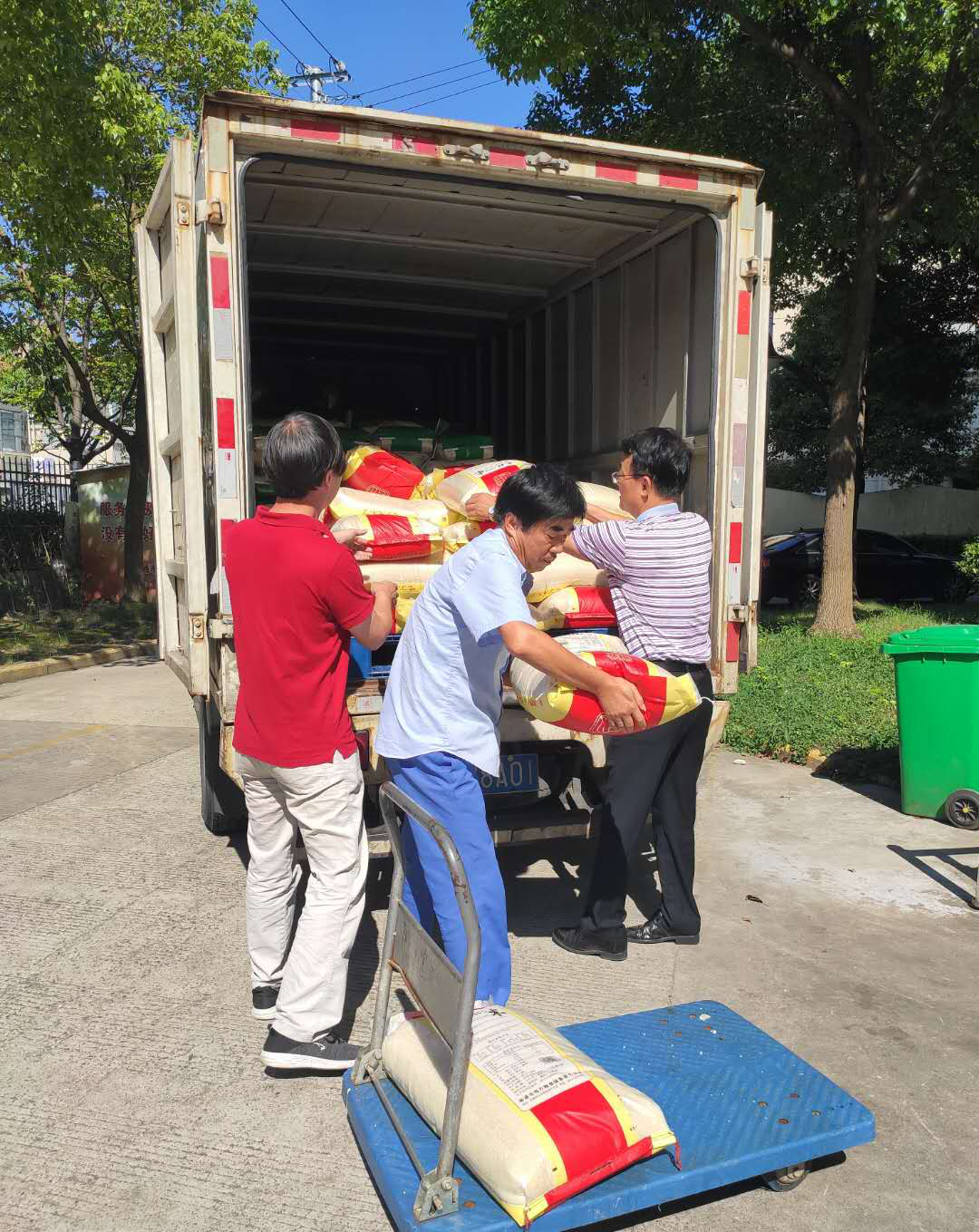 此次慰問活動,我公司共為陽光養(yǎng)老院送去七百五十公斤的大米,公司領導及志愿者頂著烈日主動幫助工人將大米搬入后勤部倉庫。
