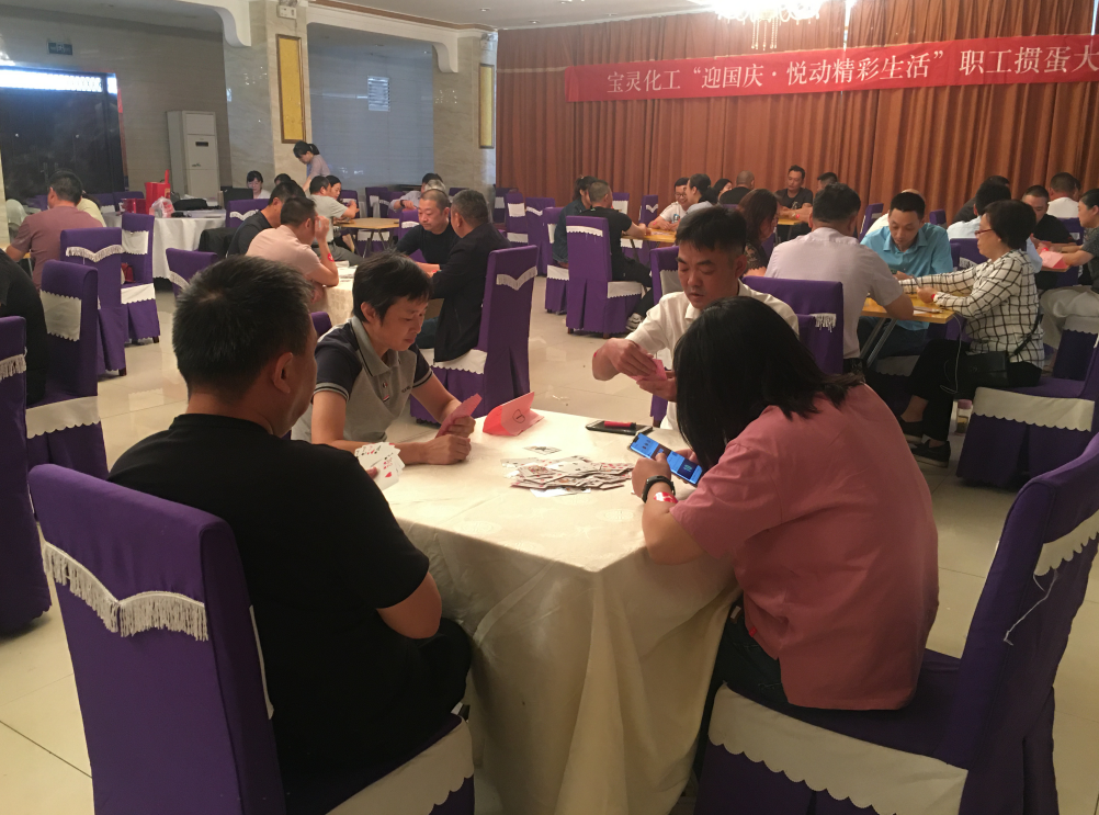 一年一度的國慶、中秋佳節(jié)將至,為慶祝新中國成立71周年,進一步提升寶靈群眾性文化活動的廣泛參與性,豐富和活躍職工的業(yè)余文化生活, 經(jīng)公司黨委研究,決定繼續(xù)舉辦寶靈化工“迎國慶·悅動精彩生活”職工摜蛋大賽。各車間、部門高度重視,積極發(fā)動并踴躍報名,共有44名選手參賽。