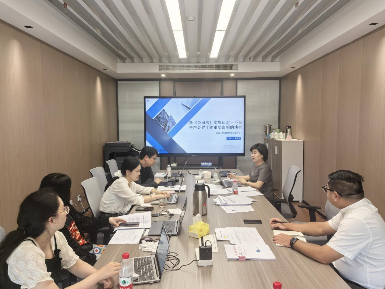 “AMC小課堂”首期課程圍繞“新《公司法》實(shí)施對(duì)不良資產(chǎn)處置工作的重大影響”進(jìn)行解析,深入探討新法下公司治理結(jié)構(gòu)變化、股東權(quán)利義務(wù)調(diào)整、清算注銷規(guī)則更新等對(duì)債權(quán)追索、資產(chǎn)處置路徑帶來的深刻變革與應(yīng)對(duì)策略。公司全體人員參加本次課程培訓(xùn)。